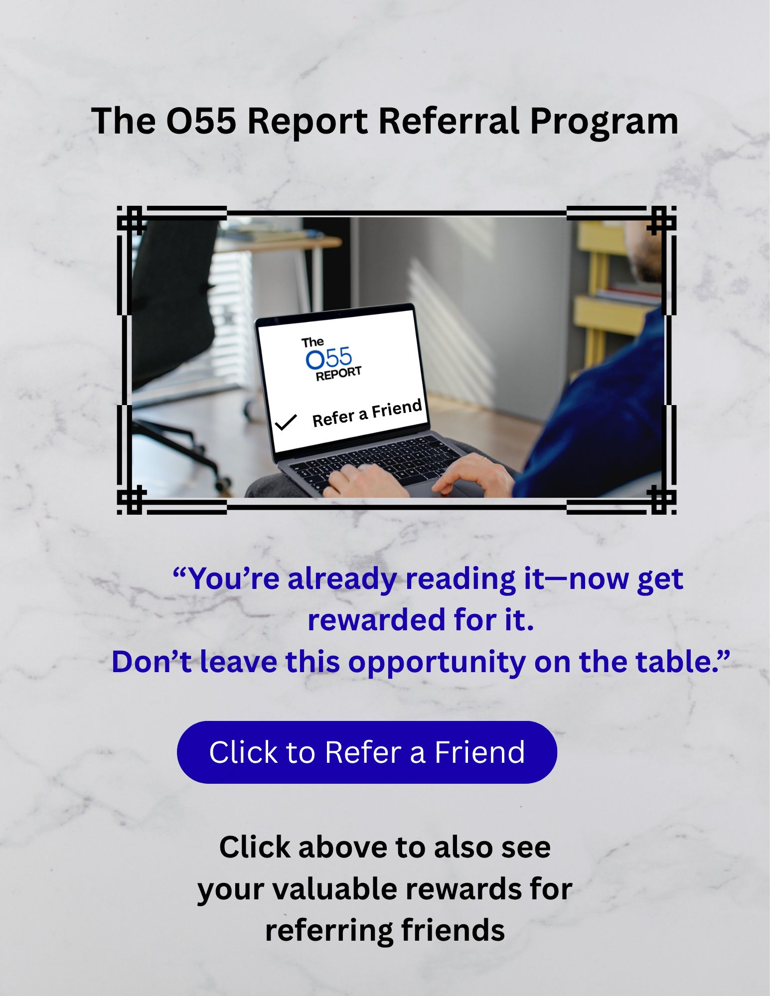The heart of The O55 Report is all about helping people, providing ideas, tips, and hacks on how to be financially smarter.